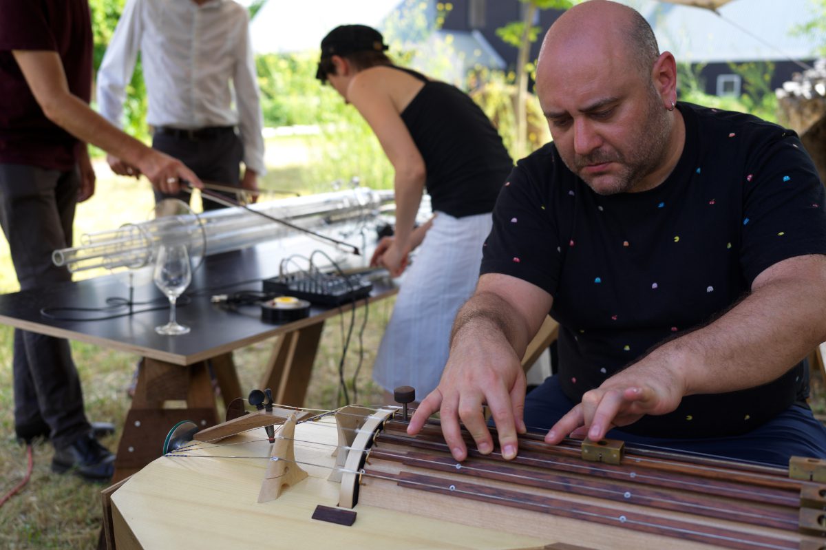 Võ and Atoui decided to host a celebration of the instruments with a community of creative musicians and artists in Guldenhof, outside of Berlin, and also outside of the usual institutional context. Over a two-day festival we played and had food, freely improvising situations with a group of unique and inspiring creative instrumentalists.