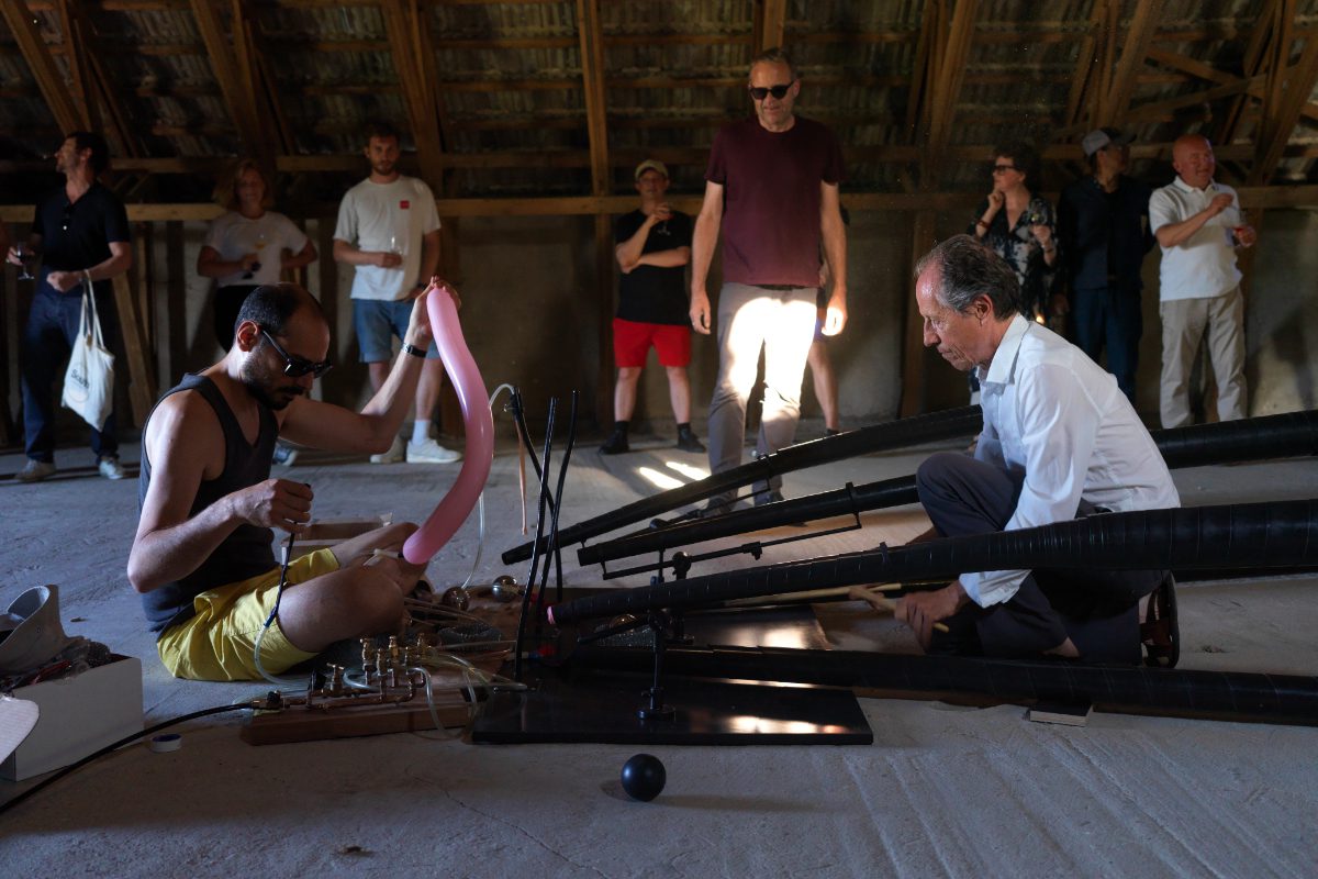 I had only seen the various inventions of the ‘Reverse Sessions‘ on the Kurimanzutto Vimeo channel until the summer of 2021, when I finally had the chance to experience the new instruments, in person and in their full glory, at artist Danh Võ’s countryside compound in Guldenhof. Võ acquired the first set of instruments in their first iteration from Mexico City, and houses them alongside his own works in an old train station-turned-utopia of his.
