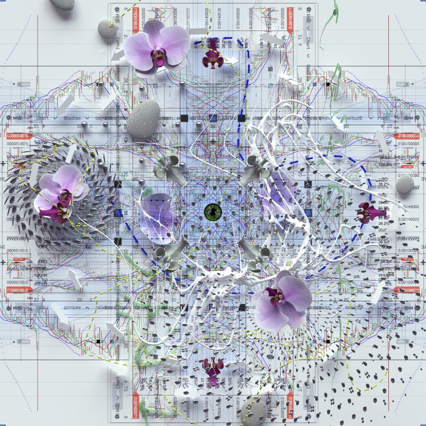 For the album cover, Priori teamed up with fellow Canadian artist Matt Cangiano on the artwork who is said to be known for “creating beautiful hybrid pieces that bridge biology, botany, and the digital world.” Additional design is the work of French artist Ellyson Gasparetto.
