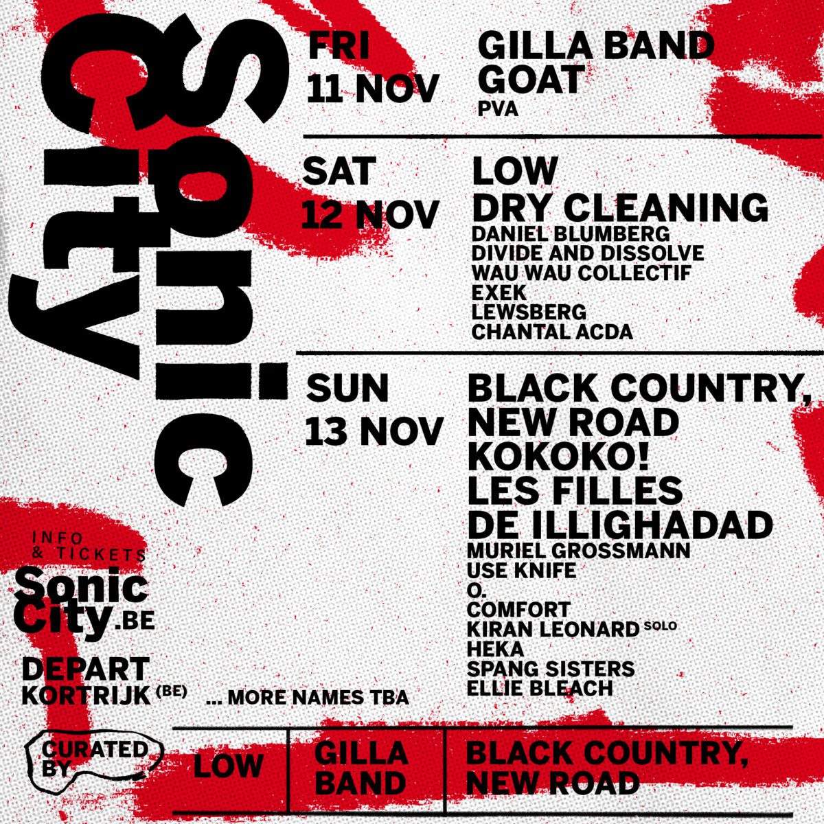 Between 11-13 November, Sonic City takes placed in Belgium, a three day alternative music festival in the city of Kortrijk curated by Low, Black Country, New Road and Gilla Band.