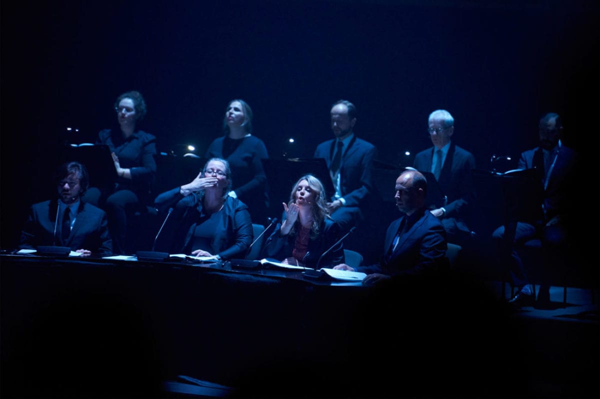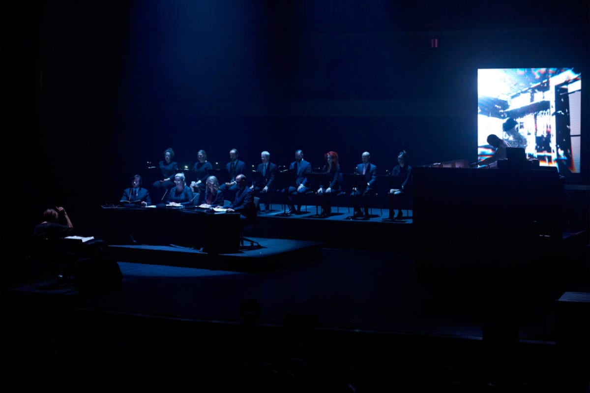 All this lengthy explanation merely frames the event itself. The lineup: Actress x Young Paint, performing a rendition of Welt-Parliament with student of Stockhausen Vanessa Benelli Monell on grand piano, the Netherlands Chamber Choir and the London Contemporary Orchestra’s Robert Ames as conductor. Young Paint and Actress’ contribution consisted of sound samples and words sourced from a debate posed to MP’s by Cunningham with the eternal question “What is love to you?”.