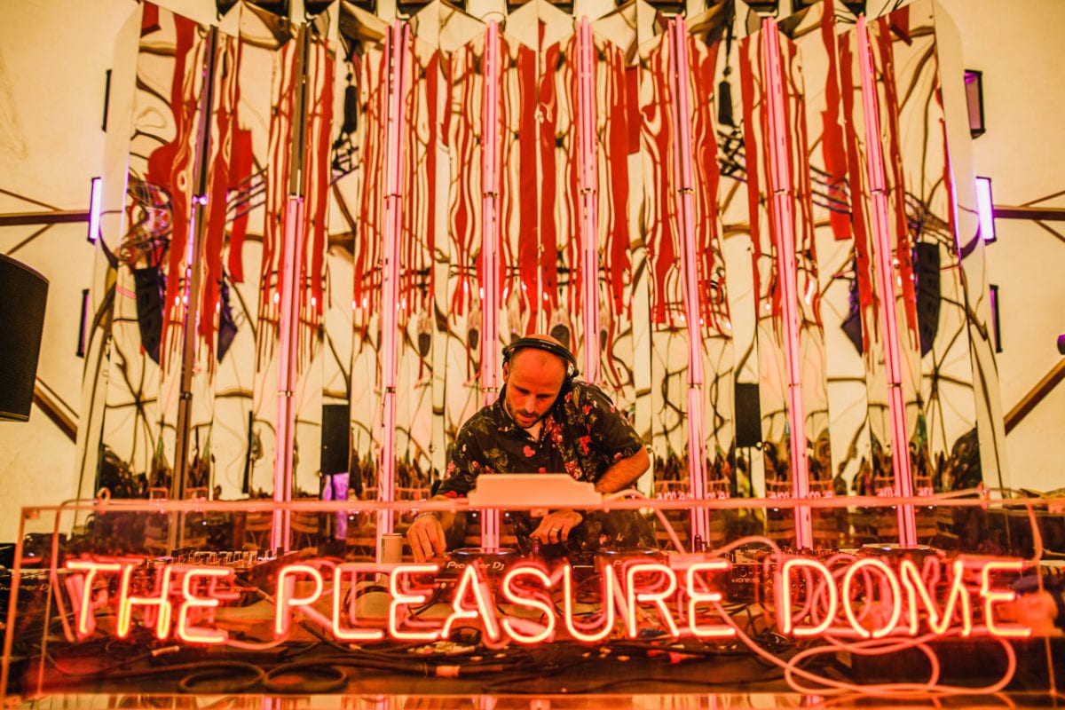 Young Marco pulled for the acid-tinged side of the spectrum, warming nicely into Palms Trax early slo-mo (110-115bpm) material, giving the ravers a brief rest on the legs whilst from the main stage attention-grabbing maestro Maurice Fulton did it how he does it best, chicaning from groove to percussion. In the eternally RAMMED “Pleasure Dome” diverse breakbeat + electro-infused weight sliced from the decks as Gerd Janson brought us up to peak time, with additional monitors outside the dome extending the “fun-zone” beyond the sweatbox inside and into the last of the day’s sun.