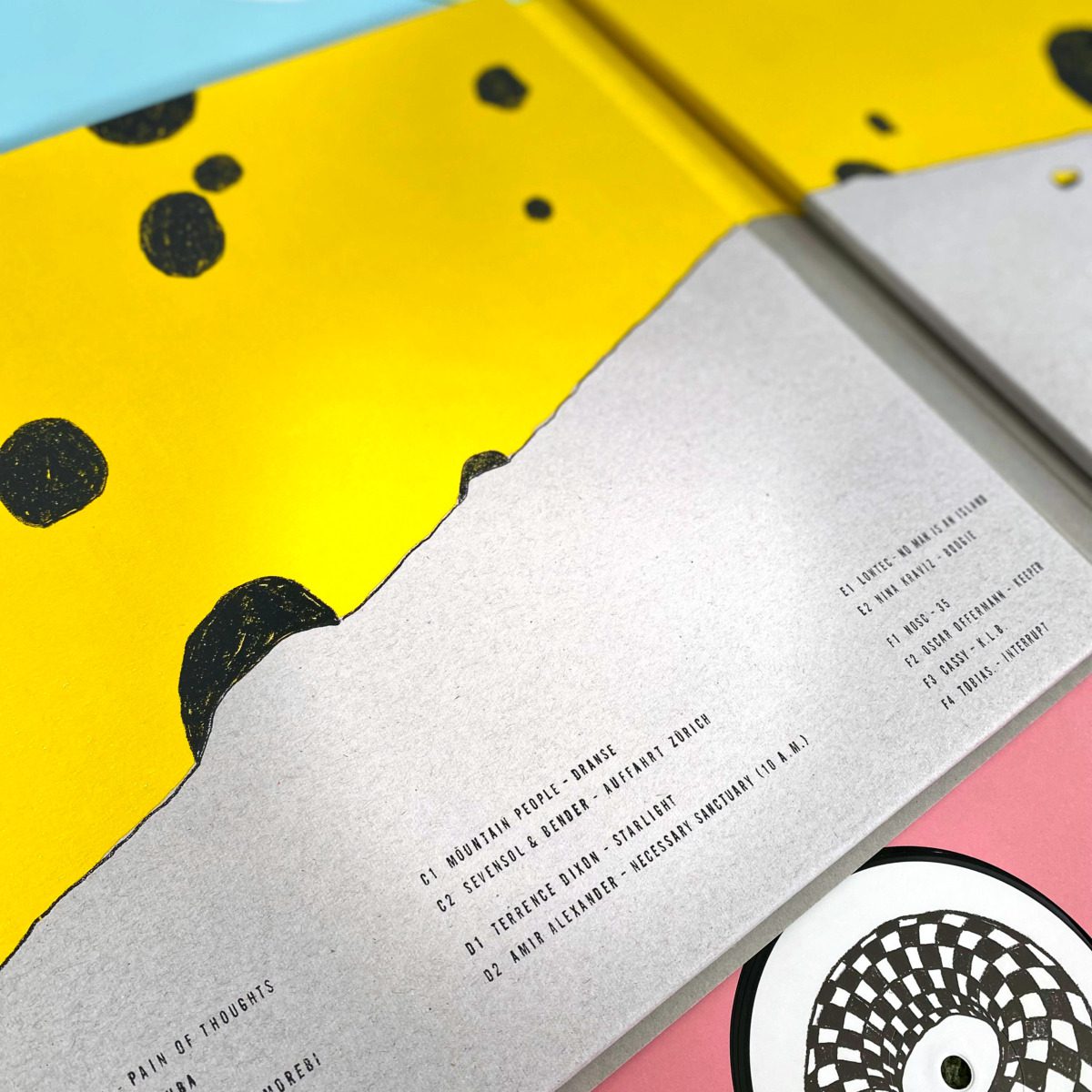 Time now for another kind of spoken word interlude on 35 by Nosc, before we’re back to that well-trodden minimal path, led by shining hats and distorted vocal sampling on Oskar Offermann’s Keeper and the warped groove of Cassy’s K.L.B. Tobias. rounds out the F-side (we’re getting there!) with another tripped-out, glitchy thing that splices chaotic electronics with dusty string samples.