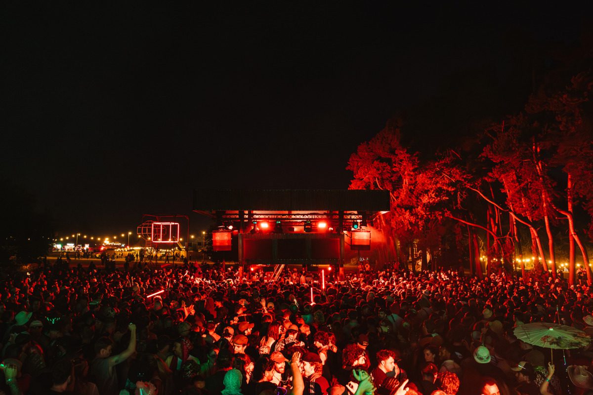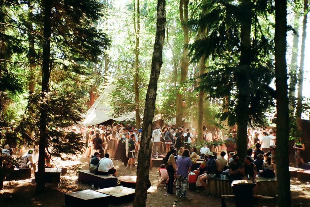 As the sun broke over the glade, announcing the beginning of Saturday morning, we hurried to the arena for the start of Francesco Del Garda at Stallions. This was the first year that 24-hour music was scheduled at this stage for most of the weekend, alleviating some of the pressure placed on Terminus. Though sad that this iconic yurt was replaced with a conical marquee, its open sides allowed an intimate party to spill into the crimson-lit woodland. We were particularly astonished to hear Del Garda, a DJ renowned for his homage to vintage sound, play an edit of pop phenomenon Charlie XCX’s ‘365‘. Surely we can all agree it must be a BRAT summer if this cult hero says so? This was the perfect cue to head back to camp and catch some brief kip.