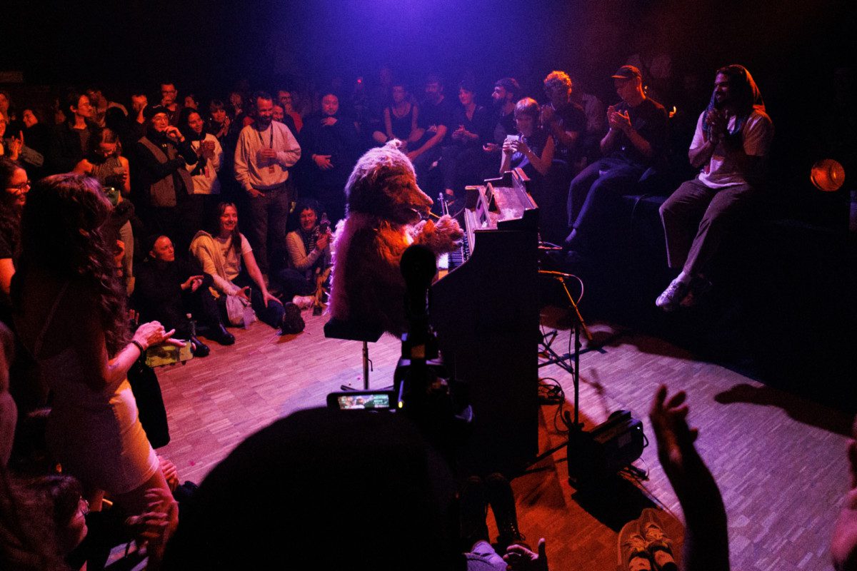 After a short interlude by Hugo Esquinca, eminent Japanese musician and vocalist Jon The Dog appeared in the centre of the room dressed in a full size dog suit. Frisking the organ, whilst psych melodies and Japanese lyrics emitted through the room. I left the space with a heightened sense of confusion. It proved humans don’t need to talk in order to interact. Whilst wandering through the hallways, I witnessed a surreal scene of Jon The Dog striking a pose to a group of photographers.