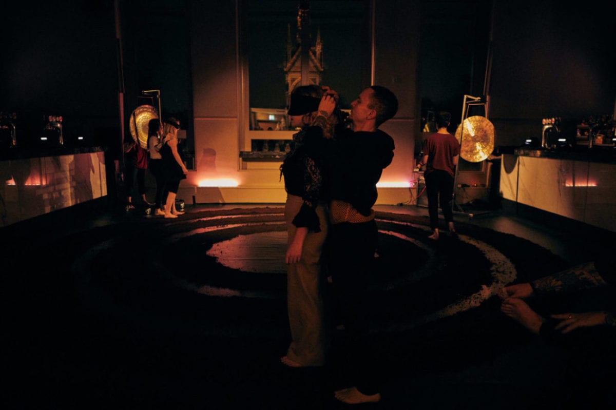 Things got a little freakier in the North Circle Bar, where collective Intimate Animals laid on the afore-mentioned ecosexual liturgy. I’ll be honest, I’m not universally clued up on my socio-anthropological terminology so I went in without much of an idea of what to expect. As it turned out, the ritual entailed being blindfolded and slowly led barefoot around a ring of deep, damp soil, with auditory stimulation provided by two softly resonating gongs and yet more modular electronic witchcraftery. It was a powerful, intensely tactile experience, the sensation of the earth between your toes made all the more evocative because of how alien and far removed from modern life it seems (hold my socks while I burn down this Pret!).