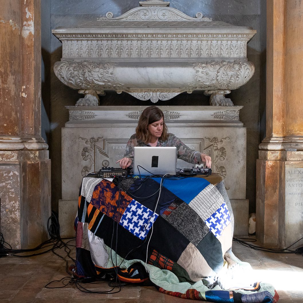 As part of the opening concert, sound artist Anna Schimkat presents for the first time ever ‘A Timeless Movement in Socks‘ in Techne Sphere Leipzig. Over the course of three hours, the installation will become an instrument and starting point for performance.