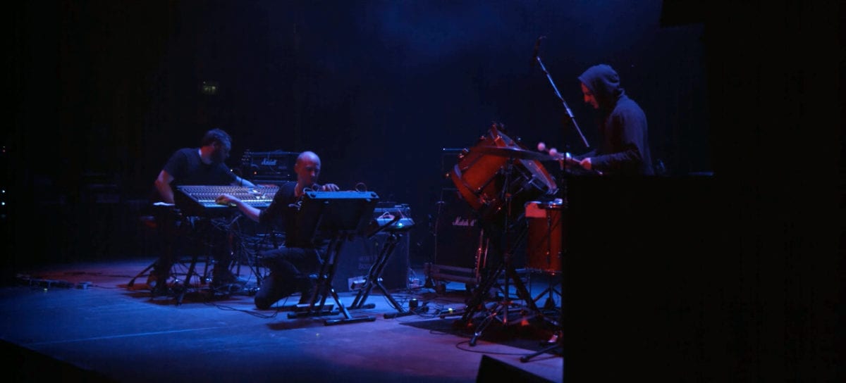 On 6th April 2016, Kangding Ray and Barry Burns appeared on stage after rehearsing for almost 6 hours with the third-generation drummer Merlin Ettore sporting a black hood. No one was really prepared for the spectacle to come: 90 minutes of classical-infused distortions, ethereal melodies shattered by thundering acoustic percussions ; a buildup of sinusoidal synth waves meshed with keyboard chords eventually going for the full-blast, its delayed arches shivering everything in their path, from the theatre’s walls to all the participants present in the edifice.