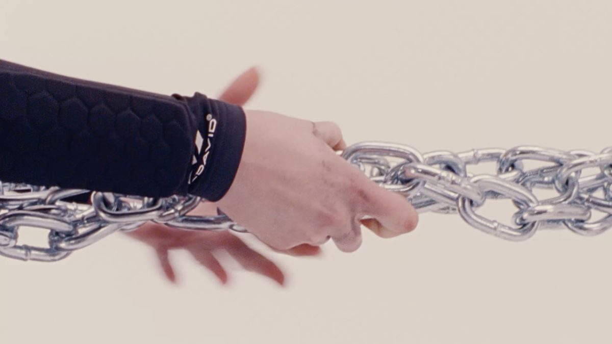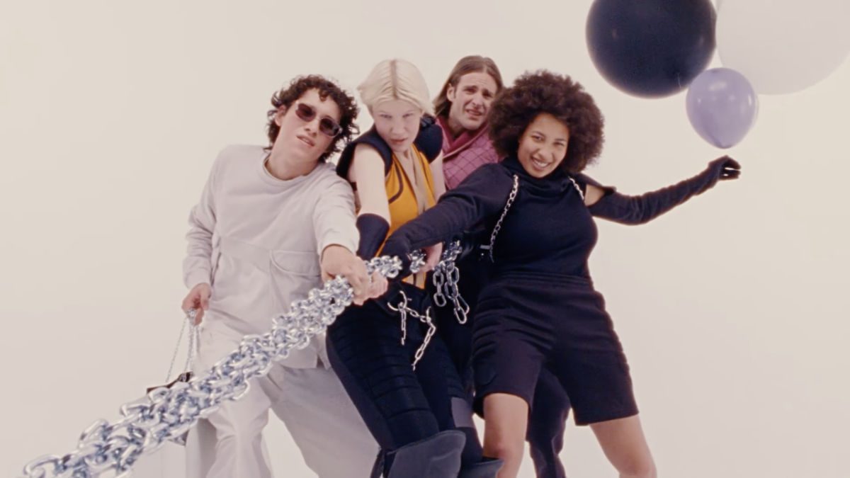 To help visualise the music contained within, OOH-sounds enlisted Leo Gack and Zoé Martin to produce the music video for the lead track ‘Mentir en Temps de Crise‘ – taking on the form of a futuristic leisurewear advert for an unknown brand specialising in warrior clothing, replete with chunky metal chains, that wouldn’t look out of place in The Hunger Games.