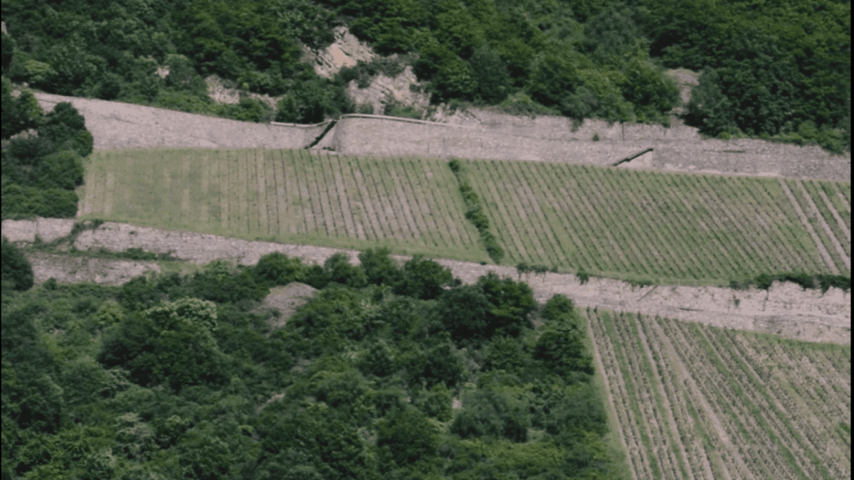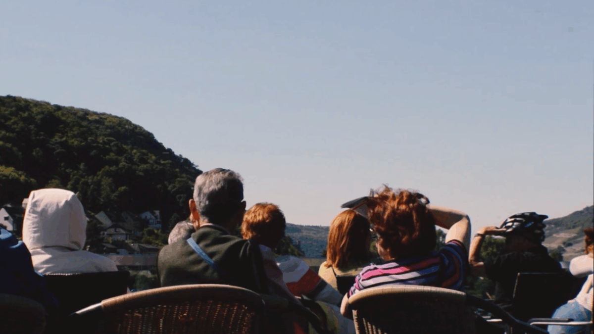 “The music video floats sideways in the liquid mixture of the duo’s sound. It was shot by Córdoba on the Rhine River in Germany during the summer of 2016 and waited silently for years to find its right soundtrack – until now. The hypnotically flat view of the Rhine Valley flows slowly and heavily, unbothered by the sparse human presence that seems to almost drift through it. Córdoba’s camera rested flat on the edge of a boat window, floating parallel to the hills along the river. The shot is so tightly zoomed that the different layers of vineyards, trees, and houses almost appear superimposed, like a digital collage. But what we see in the frame is, in fact, a single uninterrupted shot captured during the boat’s short journey toward the German Black Forest. The video was shot, directed, edited, and color-corrected by Ignacio Córdoba himself, who has worked as a director, camera operator, and editor for nearly 20 years, creating music videos for Spanish alternative artists and bands such as Aries, Encono, and More.”