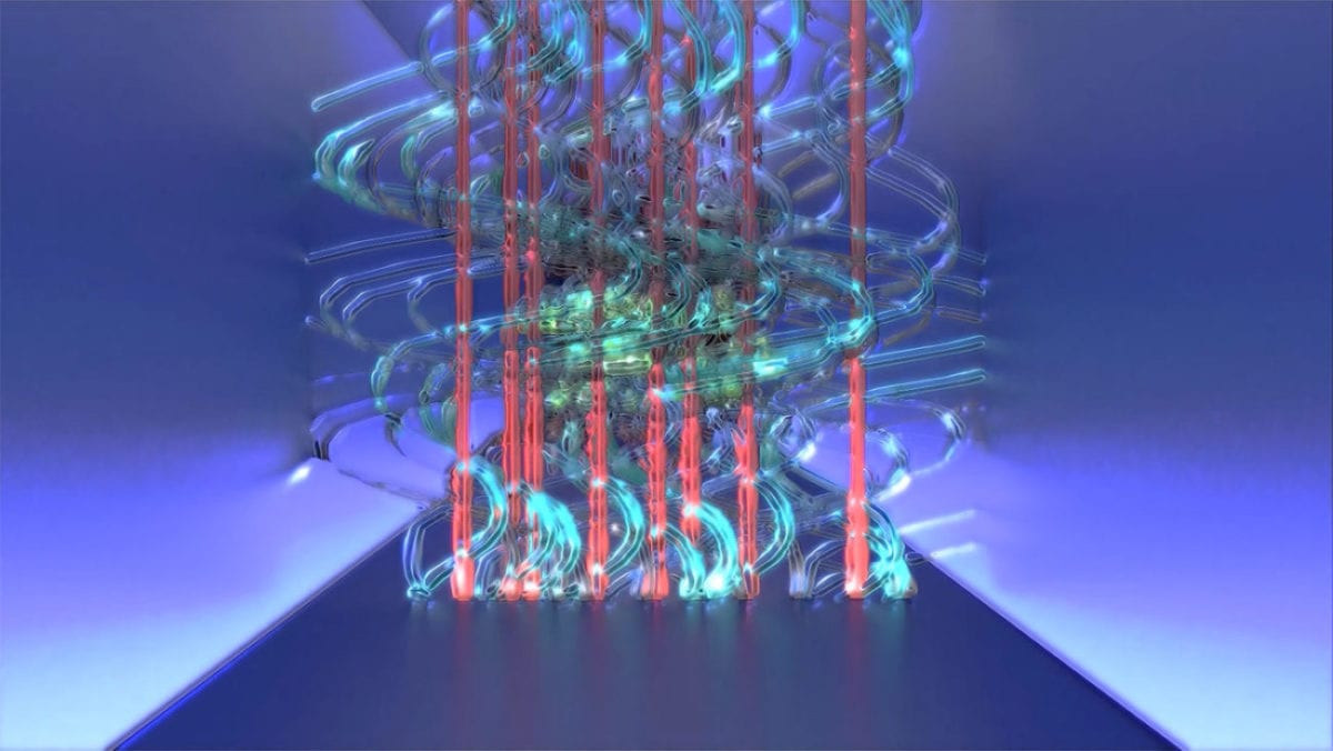 Premiering through our channels today, her video for the lead-track ‘Schmock Machine‘ is a mind-blowing kaleidoscope of dancing abstract forms and patterns, multiplying intricate superimpositions of glassy textures, shape-shifting whorls of vivid colours and other glitchy tapestries reminiscent of hallucinogenic ’90s-era Windows screen savers.