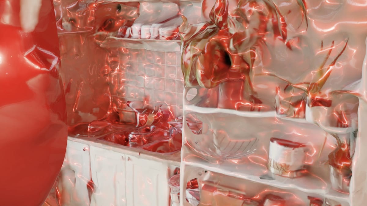 she.PHASE’s visual art lurches into view, a disconcerting world rendered through latex and over-the-counter meat, shopfronts and file cabinets reflected in the sheen. The title hangs on screen, before popping the a dancer moving to the near-impossible rhythm of ‘bubblegum’.