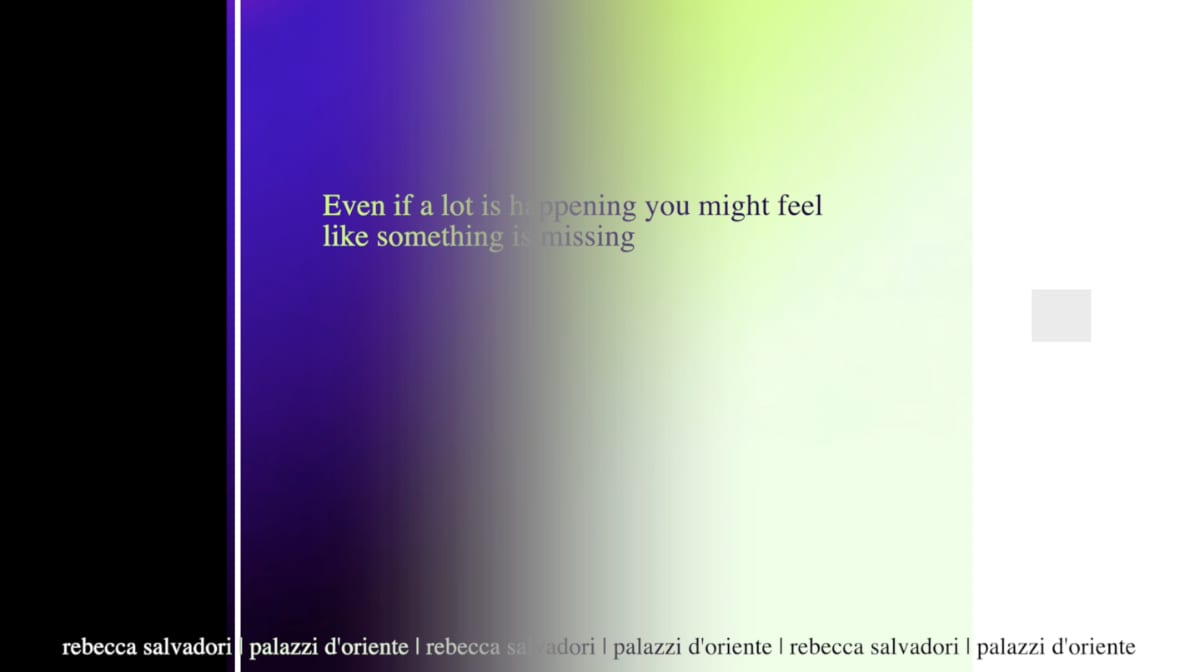 Flux 101 is the outcome born from the collaboration between Palazzi D’Oriente and video artist Rebecca Salvadori.