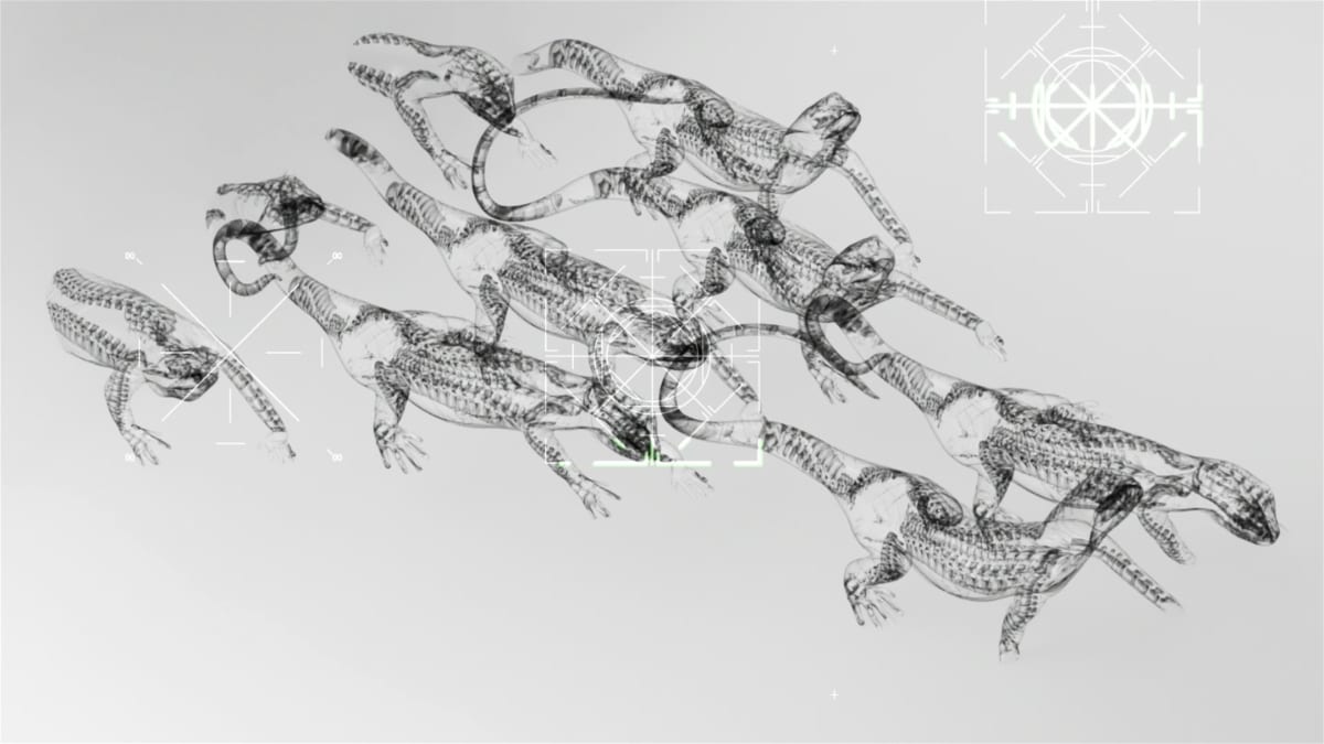 The video highlights the music’s inherent stealthy sabotage-mission vibe. Neon-green cross-hairs flicker over prospective reptilian targets and alien undergrowth, the screen decorated with visuals reminiscent of early 90’s imaginings of spacecraft displays. Sci-fi to the core, progressive scans of lizard anatomy take an almost sinister centre-stage. As the track’s pace and fervour increase, the x-ray scans of reptiles become increasingly intricate, the targets increasing in number and threat…