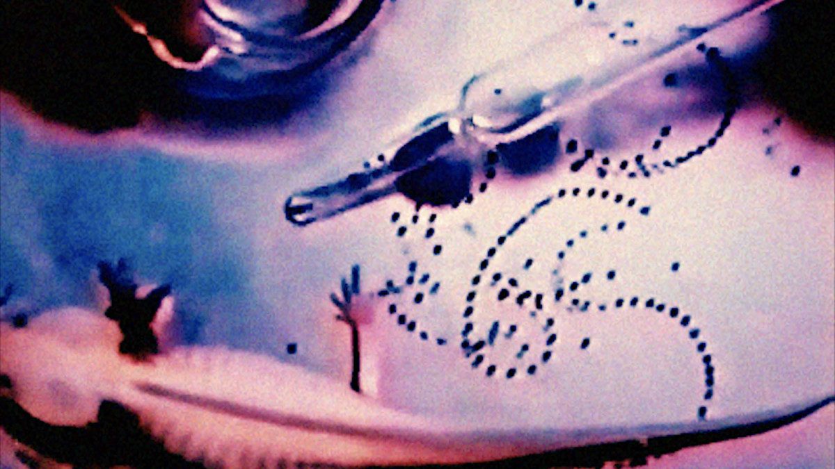 “In terms of the technical production of the video I used basic layering effects and video alterations in my editing software. I gave everything a fuzzy pink and lavender hue. I like it when old film gets degraded enough to become abstract forms and textures, especially out of context. I used to make zines and maybe there’s something of that in this video… finding old images and screen or Risograph printing them into different colours, letting them lose resolution, and seeing how images change in different contexts, as they overlap on the page and in your mind and find new meaning.”