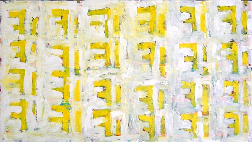 I would say: Wow, interesting how the spectrum of exhibited works develops from serial, specific, strict repetitions across evolving patterns and structures through to free, abstract forms and connections whilst nevertheless revealing an inner coherence. Opposites but connected at the same time. The art of contradiction. Surely works in music, too. Apart from that, I’d say: “Pop(Art)-educated, abstract-expressionist minimalism.”